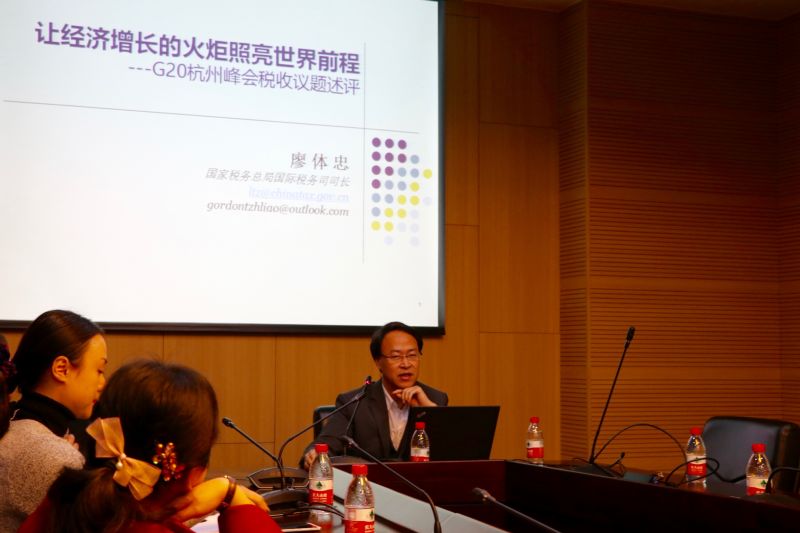 廖教授接着对税收促经济增长部分展开讨论,““增长”是峰会的关键词。峰会要求二十国集团建立“公平和现代化的国际税收体系”、实施“增长友好型的税收政策”,以促进世界经济增长;提高世界经济抗风险能力,以促进跨境投资和全球经济增长;加强国际税收合作,提高全球经济抗风险能力,以促进世界经济增长;帮助发展中国家提高税收征管能力,以促进包容性增长;“减少关税和非关税贸易壁垒,减少对外国直接投资的壁垒和限制”,以促进国际贸易与投资的增长;打击国际逃避税,以促进世界经济可持续发展;推动供给侧结构性改革,以促进创新驱动和包容性增长;最终,构建创新、活力、联动、包容的世界经济。”关于税收促经济增长呼声高的原因,会议总结有,经济全球化出现倒退;全球经济复苏乏力;金融领域出现历史上罕见现象,即利率困局;全球实体经济大幅下挫,投资缺乏,需求不足;科技进步不足,上世纪八十年代的以信息技术和互联网技术为代表的科技进步带来的经济增长动能逐渐衰减,新一轮科技和产业革命尚未形成势头;财富在地区间、阶层间、人际间分配不公,严重抑制需求与投资增长;地缘政治紧张,局部战争频仍;主要经济体进入老龄化社会,人口增长率下降,给各国经济社会带来压力;气候变化、恐怖袭击、难民涌动,给世界经济增长带来更大不确定性。而后廖教授着重强调了会议倡导促进增长要深化国际税收合作,“在单纯依靠货币政策促进增长的效果不断递减、主要经济体政策明显分化难以形成合力、贸易投资保护主义抬头、构建开放型经济任重道远的背景之下,税收成为促进经济增长的重要政策变量。国际税收合作不仅直接影响经济增长,而且影响世界财富分配,决定了经济增长的红利能否实现共享。因此,杭州峰会倡导深化国际税收合作。”究其原因,廖教授表示“深化国际税收合作是经济全球化背景下促进经济增长的重要政策选项之一。经济增长既源自要素投入总量的增加,也源自要素生产率的提高,还与要素投入结构有关。世界经济正在从主权经济向全球化经济快速发展,经济全球化意味着生产要素跨境流动,全球资源与要素跨越主权边界在世界范围内实现更加高效的配置和利用,从而为世界人民创造更多福祉。世界上至少50%以上的价值创造涉及国际交易,包括货物贸易、服务贸易、跨境债务融资、股权投资与交易、跨境重组、无形资产交易、国际租赁、劳务输出等等,所有这些都涉及税收政策。国际税收合作通过鉴别比较优势,盘活闲置要素,促进要素流动,增加全球要素供给,优化要素配置,升级要素结构,提高要素生产率,进而促进世界经济增长,并深刻影响经济增长结构。深化国际税收合作是化解经济全球化与税收法律本地化矛盾的必然选择。与经济全球化不相协调的是税收高度主权化,税收立法、执法、司法都与主权高度相关。事实上,迄今为止,世界上除欧盟颁布的税收法令以外,还没有超越国家主权的国际税收法律法规。逐步趋同的国际经济交易模式和规律遵循着世界近200个不同的税收制度与征管办法,制度差异与交易成本大大增加了国际交易难度,严重影响国际经济合作,阻碍经济全球化进程。另外,经济全球化与税收法律本地化的矛盾还给有关国家提供了贸易和投资保护主义的机会和借口,每当世界经济出现困难,一些国家就通过调整国内投资与税收政策,限制外来投资,促进国内就业,税收与投资政策均出现内顾倾向,从而使经济全球化进程倒退,殃及世界经济复苏与增长。另外,税收利益的协调与分配也成为国际经济合作的内容。因此,加强国际税收合作,通过政策协调和征管协作,消除税收法律本地化给生产要素配置带来的障碍,是促进世界经济增长的重要措施,也是管控分歧,实现世界携手共进、合作共赢的必然选择。