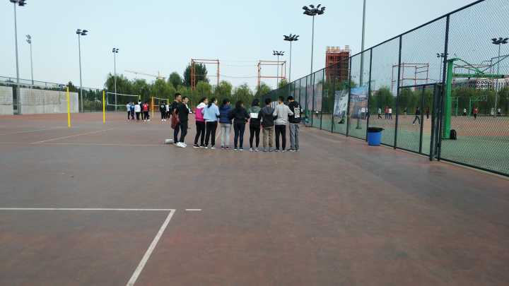 中午两点整,同学们到达各院场地,准备就绪。各学院后勤场地上,院旗迎风飘扬。同学们有的为运动员准备饮料水果、有的在整理服装、有的在运动场地锻炼身体,忙得不亦乐乎,蓝天下的运动场一下子热闹起来。