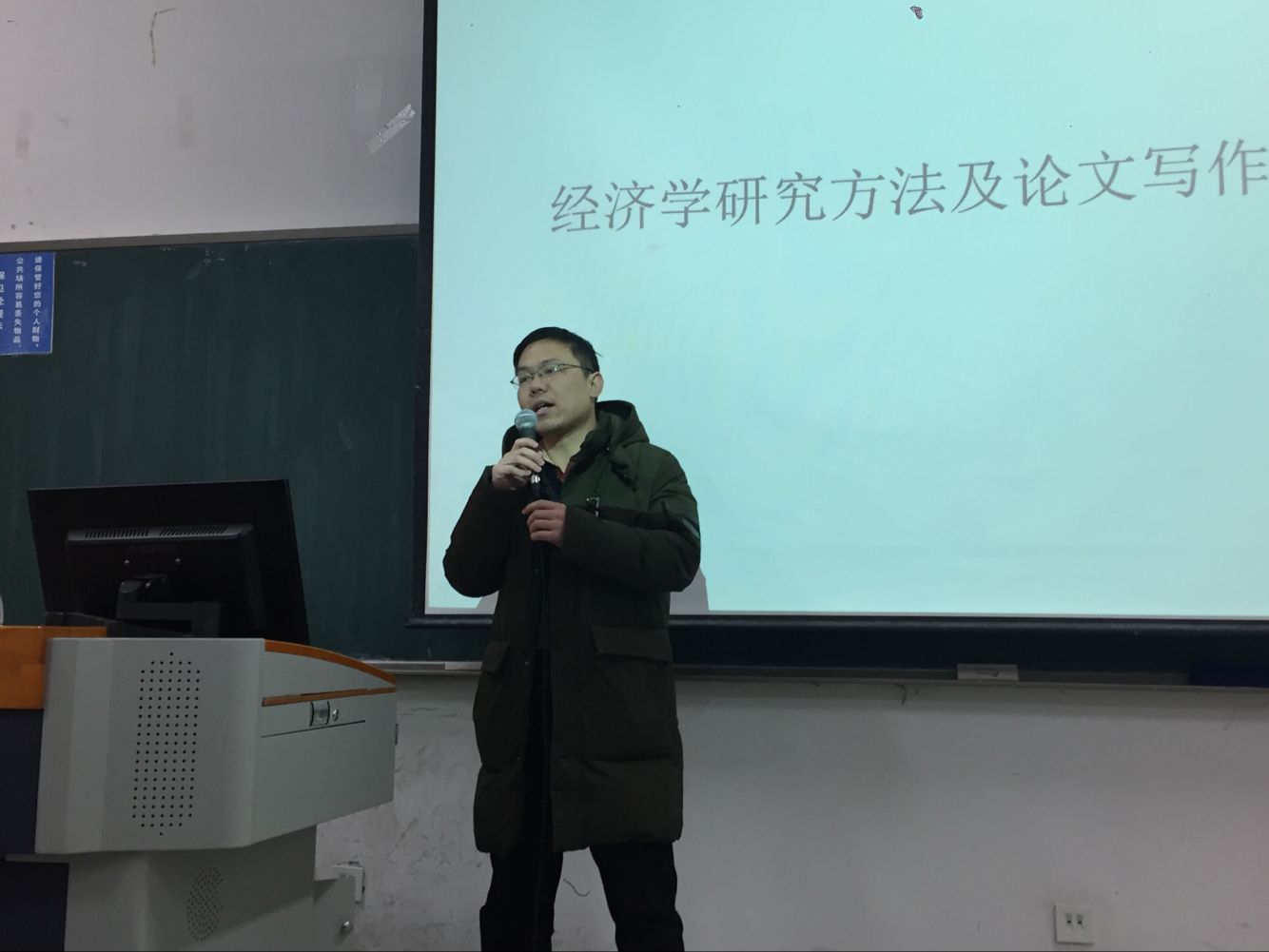 简单介绍后,过深老师正式开始讲解论文写作技巧。首先,过深老师详细地讲解了大学生寻找研究题目的步骤和方法技巧,即同学们可以从课本中寻找合适的题目,然后阅读相关文献并做好记录,避免了无从下手的茫然。老师还提到在阅读过程中同学们应注意的几点问题,比如,同学们要留心总结文献研究了什么问题、结论是什么、应用了哪些计量模型及数据并思考还有哪些不足。同时,许多论文中引用了前人的研究,如果同学们对该课题有兴趣,就可以顺着线索深入阅读研究。