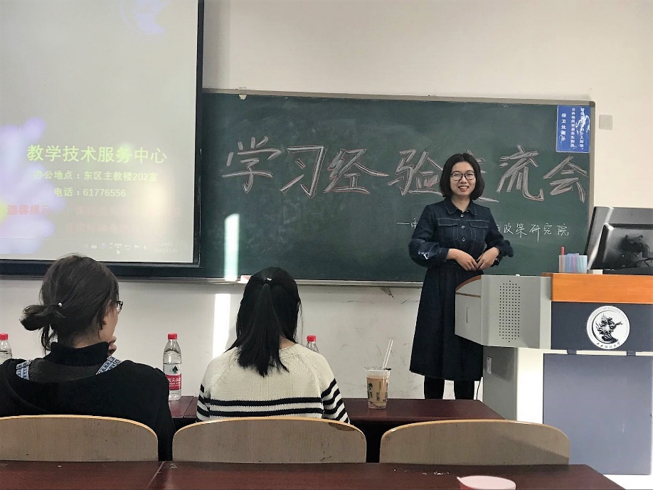 首先进行经验分享的是目前保研于人大财政系金融学的刘礼丽学姐。她主要就有关保研的准备,个人经历及建议与同学们进行了分享。对于准备工作,她谈到对成绩的要求及专业知识的重要性;当谈到自己的保研经历,她提到:面试准备的论文中要有比较好的研究方向。此外,要做好每一步,注重细节工作,体现出严谨的治学态度。并以个人面试过程中,被问数据的处理软件为例,回忆分析了准备时细节处理的基本要求。她向同学们建议提早对自己有合理定位,规划好自己未来的发展,提前做好准备。